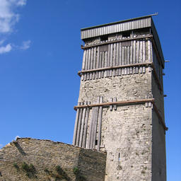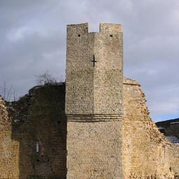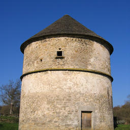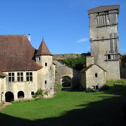Certaines portions des murailles présentent, à l’extérieur, une base élargie en forme de talus ou de fruit. À l’entrée, le fossé a été comblé pour faciliter le passage. L’ensemble fortifié est constitué de deux enceintes accolées : la basse cour et la haute cour.