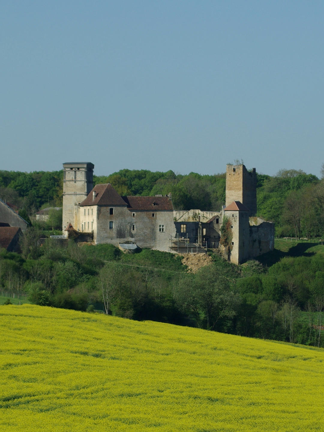 L’implantation de cet édifice, sur une légère pente, au bord d’un plateau calcaire, n’est pas due au hasard. Au nord, la défense est assurée par le relief naturel. Le château surplombe un profond vallon, face aux buttes de Montjustin et du Mont Gedry. Du haut des tours, vers le septentrion, la vue porte au‑delà de la plaine de Lure jusqu’aux formes arrondies des ballons vosgiens. Elle est limitée, au midi, par les premiers contreforts du Jura.