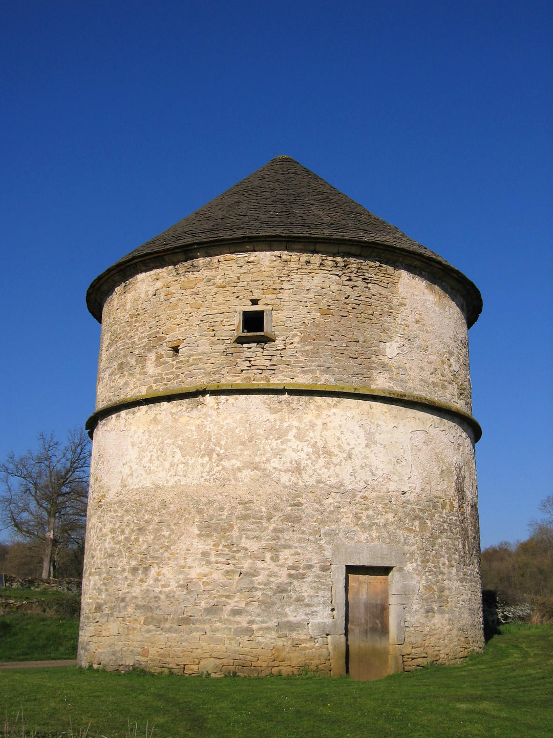 À l’extérieur et à mi-hauteur des murs, une ceinture avait pour fonction d’empêcher l’intrusion des nuisibles par les issues réservées aux pigeons. Ces deux ouvertures, orientées à l’est et au sud-est, protégées des vents dominants, sont les seules sources d’éclairage de ce bâtiment, dont la toiture a été restaurée en 1984.