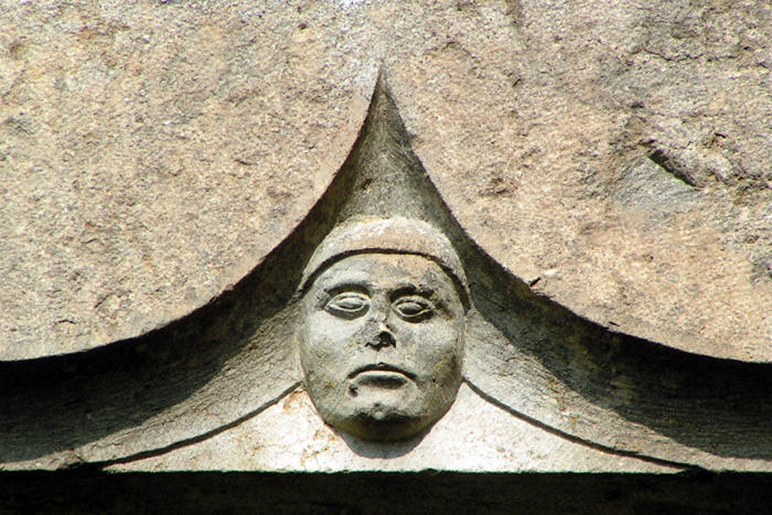 Visage sculpté représentant peut-être Nicolas Rolin ou son fils Guillaume.